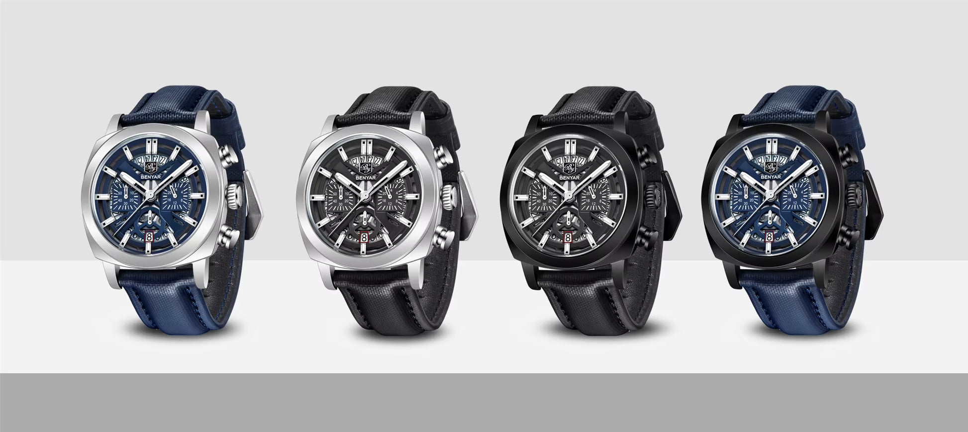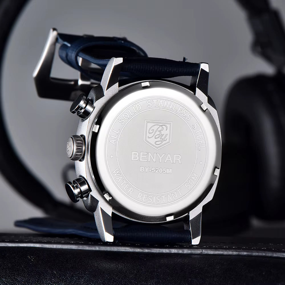 Benyar 2025 Men’s Chronograph Watch – 43mm Luminous Dial, Quartz Movement, 50M Waterproof