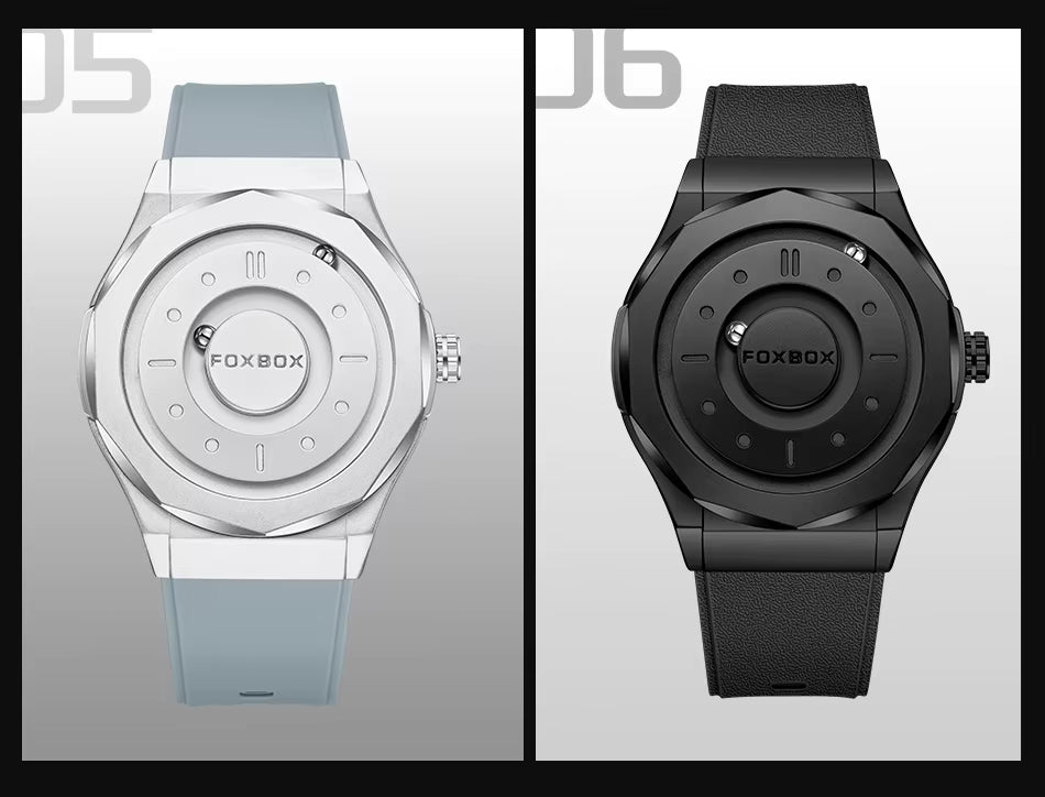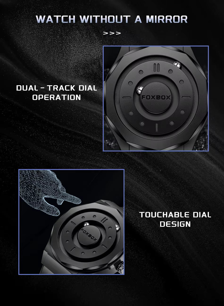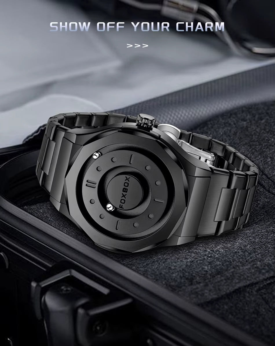 FOXBOX Men’s Quartz Watch – Creative Scrolling Pointer, Magnetic Display, Waterproof Outdoor Sports Wristwatch